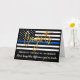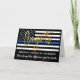 Cartão de Parabéns de aposentadoria de linha azul fina. DESIGN nos Estados Unidos com cores na Polícia, design azul preto moderno com elegantes 'Parabéns' em guião de ouro. Cite "Nunca esqueça a diferença que fez". Personalizado a partir do nome dos seus oficiais e personalize o dentro com a sua mensagem pessoal. Veja nossa coleção para fazer correspondência com convites de aposentadoria polícia, presentes de aposentadoria policial, favoritos para festas e suprimentos. COPYRIGHT © 2020 Judy Burrows, Black Dog Art - Todos Os Direitos Reservados. Cartão de Parabéns de Script Dourado para Reforma Policial