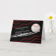 Parabéns no Grande Slam, cartão de cumprimentos em papel com linhas de ação de beisebol e branco a disparar atrás do baseball. Pontos vermelhos ondulados em preto no fundo. Uau! Vitória! Arte, imagem e direitos de autor © Shoaff Ballanger Studios.
