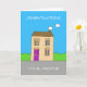 Uma bela casa de desenho animado com uma brilhante cobertura verde de ambos os lados e um céu azul brilhante atrás dela. As palavras "Parabéns, é pago em cheio!" acompanham a imagem.