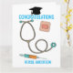 Um cartão de formando de enfermeiro macho personalizado com um boné formando, estetoscópio azul, banda e uma agulha. Você poderá personalizar facilmente a frente deste cartão de formando de enfermeira com o nome da enfermeira em texto azul. O dentro lê uma mensagem de formando de parabéns que pode ser personalizada por você e a parte traseira apresenta um boné de formando junto com o ano de classe, que você também pode personalizar. Este grande cartão de formando da escola de enfermagem é um excelente para o formando de enfermeira.