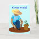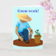 parabéns - jardineiro excelente plantando mudas e dentro de canteiro de flores completamente cultivado Você pode mudar as palavras para se adequar à sua mensagem e a cor de fundo também pode mudar