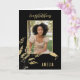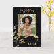 Cartão com fotos de Formando de folhas de Parabéns pretos Dourados elegantes com um nome de Formando e uma foto. Cartão de graduação com uma bela folhagem de ouro sobre fundo preto, Parabéns de texto, um nome e uma foto do formando no lado frontal - personalize com seu nome e sua foto. Personalize o texto na dentro da placa ou apague-a.