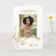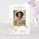 Formando de Parabéns brancos Dourados elegantes Cartão com fotos Foliage com um nome de Formando e uma foto. Cartão de graduação com uma bela folhagem de ouro, Parabéns de texto, um nome e uma foto do formando no lado frontal - personalize com seu nome e sua foto. Personalize o texto na dentro da placa ou apague-a.