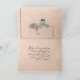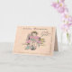 Este cartão tem uma garotinha vestindo um vestido rosa e segurando um buquê com flores azuis. Ela tem cabelo louro encaracolado com arcos cor-de-rosa. A garotinha está sentada em um banco ao lado da boneca com um vestido azul e seu gato amarelo e preto. No topo da dentro, há a boneca no vestido azul segurando novamente um buquê de flores cor-de-rosa Todos os designs de cartas têm pelo menos 55 anos, e são recriados digitalmente para uso atual. Vejam que é a correspondência.
