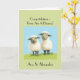Cartão de saudação religioso "Parabéns - bebês gêmeos são uma bênção", personalizado com nomes de gêmeos. Ilustração de ovelhas bonitas, com dentro de texto (adicionar texto, alterar texto ou apagar texto para ter um cartão de vazio e escrever a sua mensagem manualmente): "Parabéns e melhores votos para você. Que os bebês gêmeos que Deus te enviou para que tenhamos, para segurar e amar, guiados pelas vossas mãos gentis e abençoados por ele". Projetado por Best Baby Gifts - dado com amor.