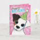 Cartão de aniversário de cão de gaiola giro, bonito, com dentro de cor de cheio. Meninas de todas as idades vão adorar esta festa bonitinha que veste o Jack Russell! Copyright © Lisa Marie Robinson. Todos os direitos reservados.