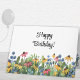Este cartão de aniversário feliz de 4"x5.6" colorido apresenta uma fronteira brilhante de flores silvestres com uma saudação de script grande, dentro de elemento correspondente e nome no verso. Altere ou remova qualquer texto para torná-lo seu usando o Modelo fornecido. Envelope branco incluído ou marca "nenhum" para preço reduzido. Qualidade de impressão excelente e altamente qualificada. Consulte "Sobre este produto" ao lado para obter mais informações.
