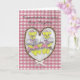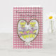 Parabéns nas suas filhas gêmeas enviam SMS com meninas ursinhos bonitinhas de coração branco contra fundo rosa de gingham
