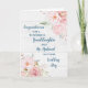 Parabéns no seu cartão do dia de casamento para neta e marido com lindos padrões de flores cor-de-água rosa e verso sentimental.