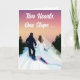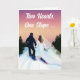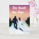 Esta carta de parabéns de casamento divertida e romântica apresenta uma noiva e um noivo a snowboard lado a lado na montanha no seu grande dia. Perfeito para um casal que ama as encostas, este design capta seu espírito aventureiro e amor pelo snowboard. Uma maneira única de dizer "Parabéns" para recém-casados que estão prontos para entrar na vida de casados juntos!