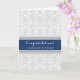 Cartão de congratulações de casamento para os pais da noiva em azul escuro contemporâneo, cinza claro e branco padrão damasco floral clássico vintage. O texto é totalmente personalizável para você escrever sua própria mensagem personalizada, uma maneira única de parabenizar os pais da noiva pelo casamento de sua filha.