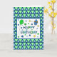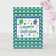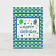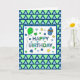 Cartão de aniversário azul e verde para um menino, homem, marido, irmão, tio, sobrinho, filho, embora você possa personalizá-lo para qualquer um. Balão de verde limão e cupcake azul.