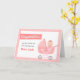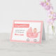 Felicite os novos pais pelo nascimento da menina com este doce cartão pastel rosa de uma menina fofa num carrinho com fundo de bolinhas. A menina tem uma fita rosa no cabelo e está borbulhando em um pacificador rosa. O texto no cobrir diz "Parabéns sobre o nascimento da sua linda menina! Sabemos que ela lhe trará muita alegria." A parte traseira da carta inclui a imagem da menina rastejando em quatro com um travesseiro.