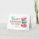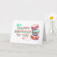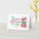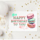 Uma aquarela branca, rosa e macarões lacrimogêneos, com um cartão de aniversário feliz para ela.