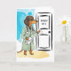 Feliz e engraçado cartão de parabéns pela aposentadoria com uma ilustração em aquarela de um dachshund médico batendo na porta de um paciente. Os resultados do teste estão disponíveis e o diagnóstico é aposentado! Arte, imagem e verso copyright © Shoaff Ballanger Studios, 2023.