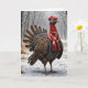 Peru usando um cachecol vermelho em flocos de neve e floresta de inverno para parabéns por parar de fumar.