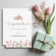 Design de Parabéns de Flores Personalizadas de de de de Realtor. Presente perfeito para seu cliente. Para um toque pessoal, adicione Nome do Realtor/Seu Nome à placa personalizada. Deseja o melhor ao novo dono da casa dizendo "Parabéns na sua nova casa!". Ou você pode mudar para sua própria mensagem pessoal. No verso, adicione o logotipo da sua empresa, seu contato e suas informações. Este cartão floral de cor d'água, bonito e elegante, irá agradar aos seus clientes, e eles irão encaminhar a sua empresa a muitos mais amigos deles!