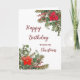 Feliz cartão de aniversário de natal de natal com folhagem de inverno rústica.