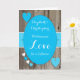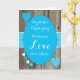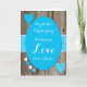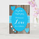 Personalize este fundo rústico e escuro de efeito de madeira, com corações brancos e azuis, cartão de Dia do Casamento para a Noiva e o Groom, com seus nomes. 'Desejar que você Ame por uma Vida' 'Amor para Sempre' Mude o texto para se adequar.