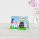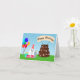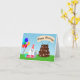 Este fofo Samoyed que está a vestir uma festa vermelha rodeada por balões coloridos, presentes envoltos, e um bolo de chocolate decadente de três camadas decorado com ossos de cão e estampas de pata, este cartão é perfeito para amantes de cães.