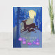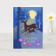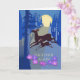 Parabéns sobre a Reunião com a Mãe de Nascimento, Cartão de Veado. Um cartão de saudação ao estilo Vintage com uma ilustração de uma mãe de veado e veado bebê correndo pela floresta à noite. Sombras de azul e violeta são predominantes na cena. Florestas, lua e flores são apresentadas na design com os dois veados em uma área aberta. Arte, imagem e verso desenhados por © Shoaff Ballanger Studios.