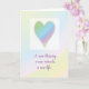 Esperado e esperado por um bebê, o novo bebê arco-íris será uma alegria especial extra. Um fundo arco-íris de cor suave imita o coração do arco-íris. Celebrar a nova bênção de um nascimento para os pais que perderam um bebê. Sensível e cuidadoso, esta carta celebrará com o novo casal no seu bebê arco-íris.
