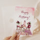 Este cartão é projetado com uma design de aquarela com mesa de aniversário destacada com buquês florais de boho, bolo de aniversário, copos de vinho, candelabros e lanternas de cordas! Há uma mensagem dentro que pode ser personalizada para suas próprias palavras ou você pode manter esta, depende de você!