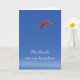Para amantes do parapente, um cartão de cumprimentos que mostre o paraglider vermelho contra o céu azul, com citações: "As nuvens são meu reino" (pode ser mudado à expressão de sua própria escolha).