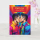Dois asiáticos americanos em um encontro amoroso e LGBTQ arco-íris com cores temáticas em toda a design de cartas criam uma bela carta de aniversário para o seu parceiro.