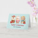 Cartão de Natal com uma ilustração fofinha, com um coelho, um urso e um veado, todos vestidos com equipamento festivo. Adorável e caprichoso.