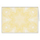 Esta mandala branca senta-se sobre um fundo amarelo claro. As cores são felizes e pacíficas. Parte da coleção Howlsplann Mandala.
