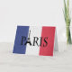 Ilustração do design de texto de Paris com decoração da Torre Eiffel em fundo de bandeira francesa desgastada