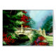 Pintura de um jardim de parque e ponte de pedra sobre a água.