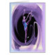 Este é um desenho de um dançarino de balé contemporâneo em uma parte traseira grande do arabesque. Está em malva, no roxo e no azul e tem um teste padrão rodado do fundo.