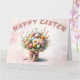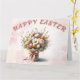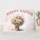 Celebre a alegria da Páscoa com este cartão de saudação maravilhosamente projetado, com um buquê charmoso de flores em matizes de pastel macio. Delicada cor-de-rosa, lavanda, azul-bebê e flores amarelas ensolaradas se entrelaçam com folhas verdes frescas, criando uma exibição gentil e animadora de beleza da primavera. Entre as flores estão ovos de Páscoa intricadamente decorados, cada um enfeitado em tons de menta, pêssego, lilás e azul-céu.