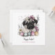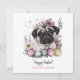 Cartão de felz pascoa de botânico de Páscoa doce. Cãozinhos de água russa e taças de cor pastel de estilo linear com ovos de Páscoa e botânicos florais. Texto personalizado com um belo roteiro de tendências.