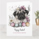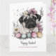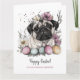 Cartão de felz pascoa de botânico de Páscoa doce. Cãozinhos de água russa e taças de cor pastel de estilo linear com ovos de Páscoa e botânicos florais. Texto personalizado com um belo roteiro de tendências.