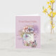 Um belo cheio de flores cercado por borboletas e mais flores. Roxo é o tema para este cartão.