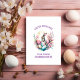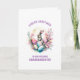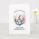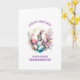 Celebre as Páscoas feriadas enviando sua neta favorita [ou personalize] nosso cartão de "Saudações Páscoas!"! Uma bonita, aquarela de um coelho de cinza/cinza sentado atrás de alguns adoráveis ovos de Páscoa pintados, bordado por lindas flores rosa.