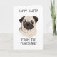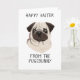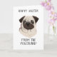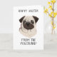 Cartão De Páscoa De Pug Bunny Pun Bonito. É Engraçado Levantar Os Espíritos Na Páscoa Durante Essa Pandemia Cobiçada. Excelente De Cartão Humor Para Família E Crianças Até Mesmo Para Adicionar À Cesta De Ovos E Caça De Ovos. Entre em contato com o vendedor para obter as personalizações ou com um cartão de tamanho diferente. E desenhou o Modelo de Pug Handmade Facilmente Personalizável. Cachorro Adorável. Animais Whimsical. Cartões de animais.