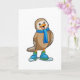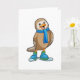 Cartão Pássaro como Esquiador com Esqui e Cachecol