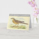 Essa design apresenta uma representação de um pássaro com penas coloridas em vários tons de marrom, em pé no chão. Ele também apresenta mensagens personalizáveis na frente e no dentro.