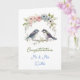 Os parabéns de recém-casados falam com pássaros carinhosos ilustrados e flores bonito, azuis e rosa. Adicione os nomes dos casais na área de personalização. conteúdo genérico