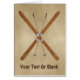 Escapas cruzadas de madeira e bastões de esqui num papel antigo, ou pergaminho, imagem de fundo. Adicione seu próprio texto.