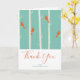 Um cartões de agradecimentos com ilustração de pássaros com pássaros laranja sentados em seus ramos. Fundo colorido verde retrô.