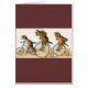 Ilustração adorável do vintage de dois gatos e de um filhote de cachorro que monta suas bicicletas com trouxas sobre.