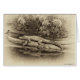 Uma interessante renderização a preto e branco de um pequeno jacaré americano descansa sobre um jacaré americano dormindo maior.
