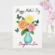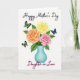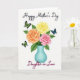This card shows a bouquet arranged in a softly curved teal vase, set against a plain white background that keeps the focus on the flowers. Three main blooms sit front and center—a sunny yellow rose at the top, a coral-orange flower to one side, and a blush-pink bloom nearby—each shaded with gentle gradients that make the petals look tender and close, like a quiet gesture of friendship ❤️. Deep green leaves spread out behind them, framing the arrangement the way a supportive hug frames a moment. Around the bouquet, four small winged insects drift in midair—two emerald green and two sapphire blue—adding a light, flirty energy as if they’re circling a shared secret 🌼. The vase has a calm aqua tone with a subtle dimpled texture that resembles ceramic or lightly hammered glass. Near the top, a short greeting appears in a dark, flowing lettering style, centered above the flowers. Along the bottom, a second line of text sits centered in a deep berry color, with the teal vase and the blue and green insects standing out crisply below it.