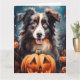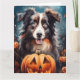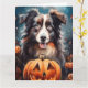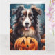 Cartão Pastor Australiano no Halloween com Abóboras Assus
