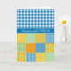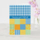 Um cartão de aniversário chic, com a saudação em galês e um padrão de "Blue and White Check Gingham" misturado e uma manta falsa de padrões Daffodil.